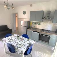 L'appartamento si compone di un soggiorno con cucina a vista, una camera matrimoniale, una camera singola e il bagno dotato di box doccia.
