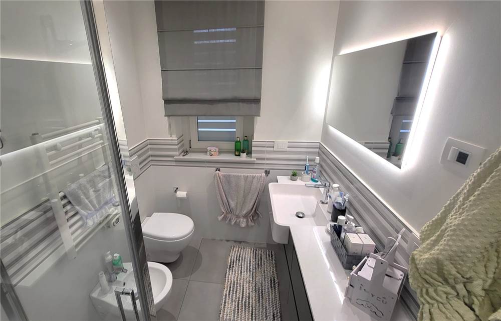La zona notte è composta da una camera matrimoniale con cabina armadio, una cameretta, un ripostiglio attrezzato a lavanderia, doppi servizi entrambi con doccia.
